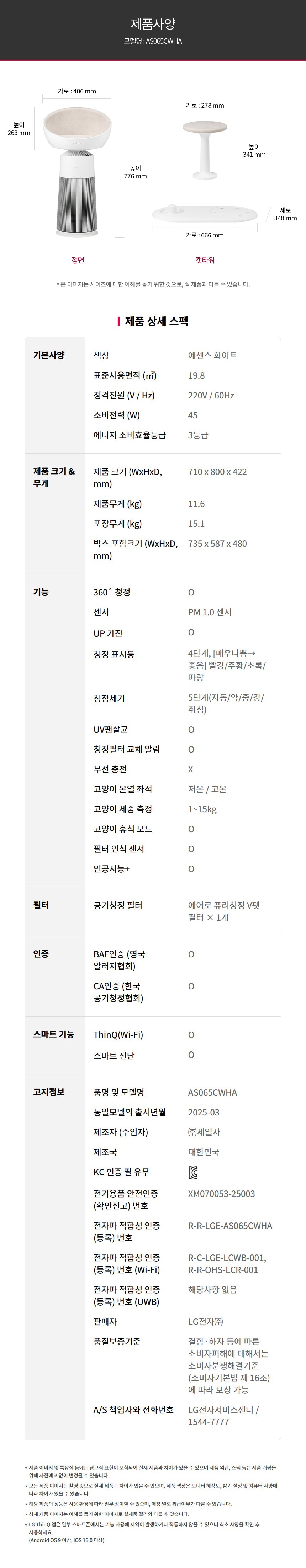 | 품명 | 엘지 퓨리케어 에어로캣타워 (19.8 ㎡ ) AS065CWHA.AKOR |