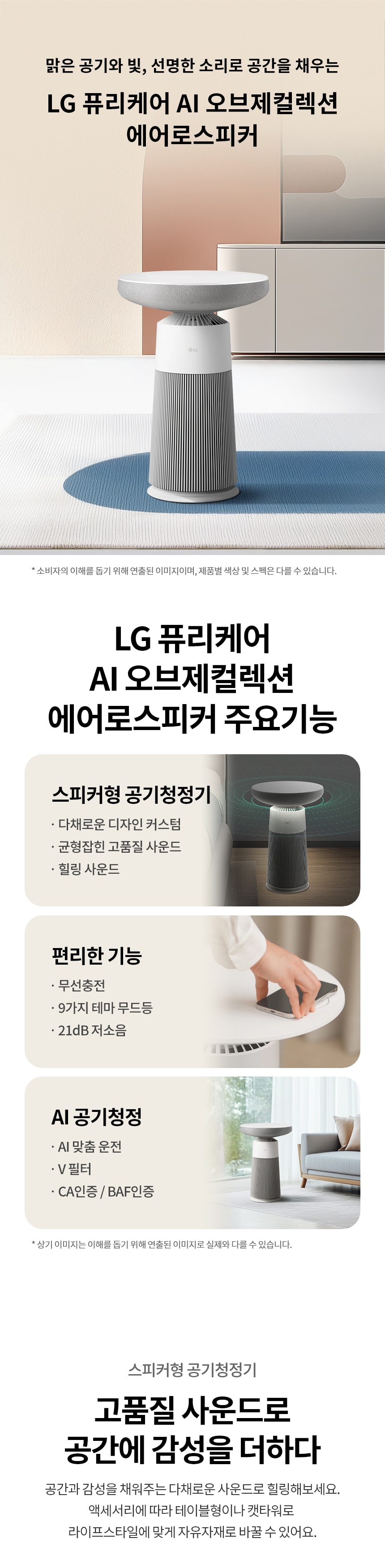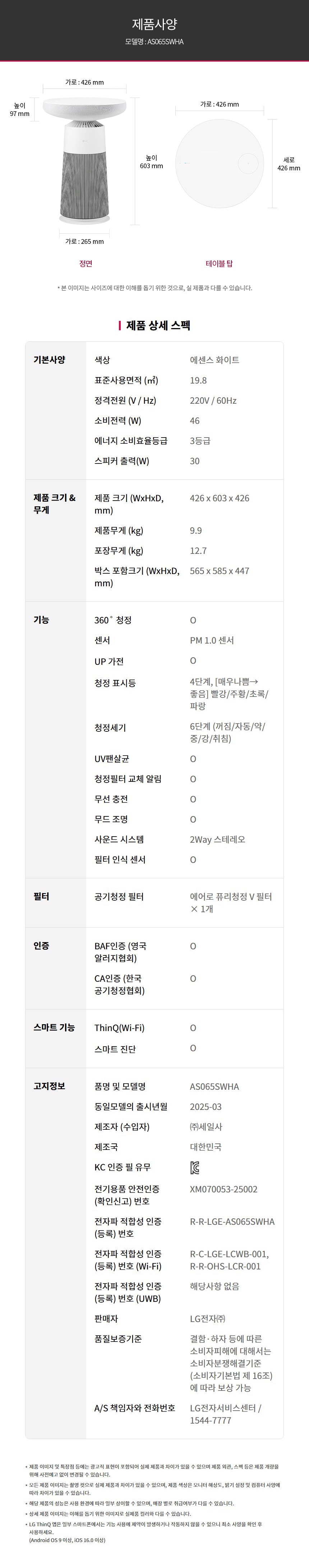 | 품명 | 엘지 퓨리케어 에어로스피커 (19.8 ㎡ ) AS065SWHA.AKOR |