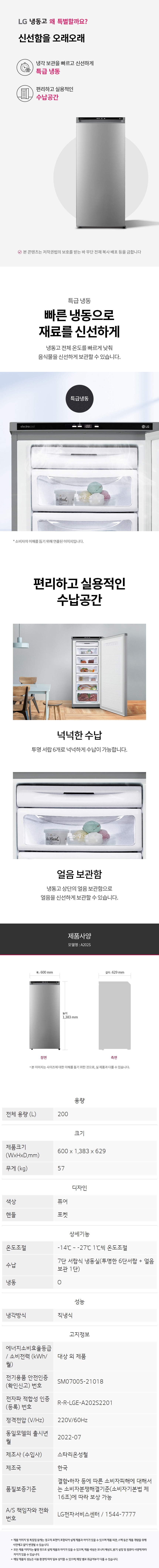 | KC 인증 정보 | 전기용품안전인증번호: SM07005-21018, 전자파 적합성 등록 번호: R-R-LGE-A202S2201 |