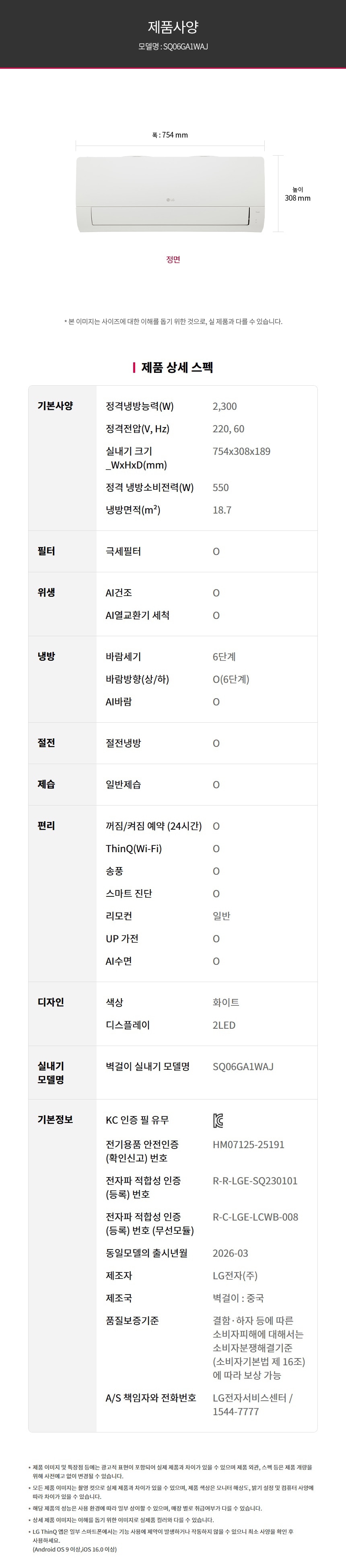 | 제조국 또는 원산지 | 스탠드 : 대한민국 실외기 : 중국 벽걸이 : 중국 |