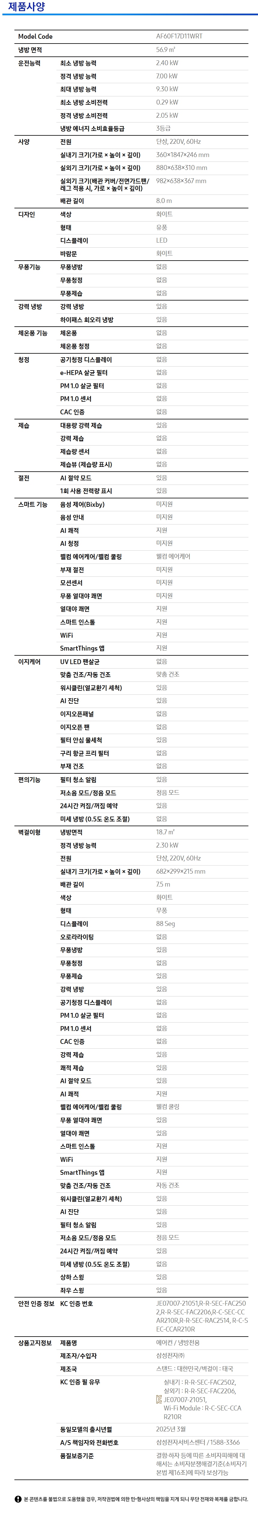 | 모델명 | AF60F17D11WRT |