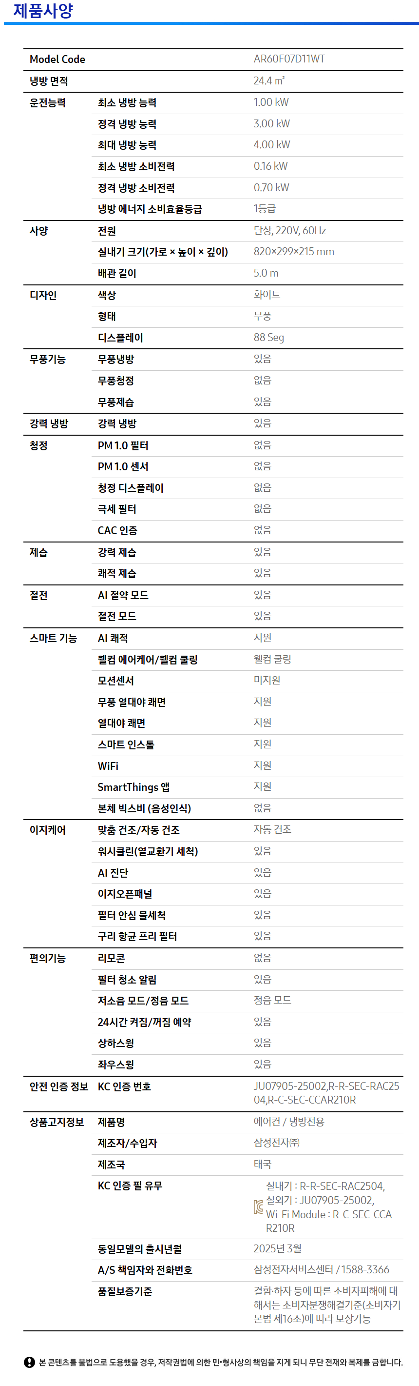 삼성 무풍 벽걸이형 에어컨 (24.4 ㎡ )