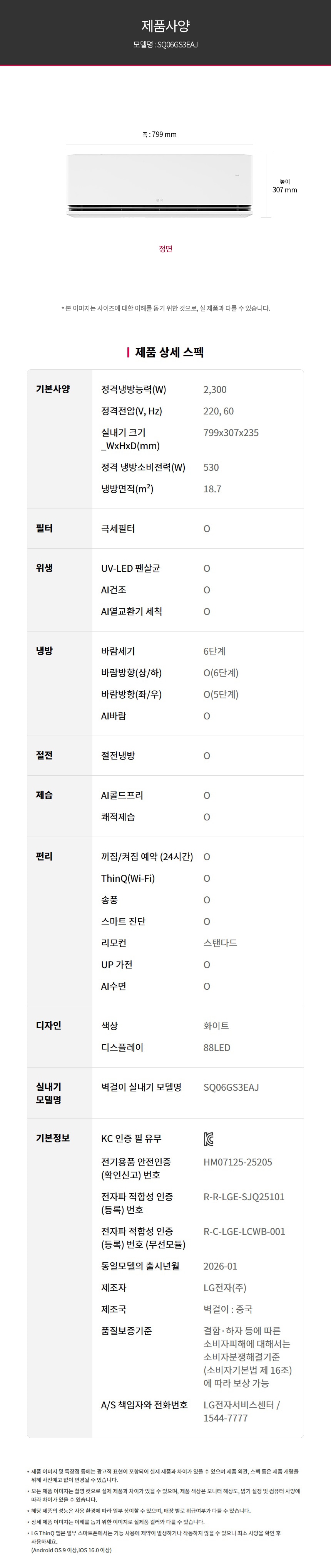 | KC 인증 정보 | 전자파 적합성 인증(등록) 번호: 스탠드 : R-R-LGE-FNQ25101 실외기 : R-R-LGE-FUQ25101 벽걸이 : R-R-LGE-SJQ25101 전자파 적합성 인증(등록) 번호 (무선모듈) : R-C-LGE-LVRF001 벽걸이 : R-C-LGE-LCWB-001 전자파적합성인증번호(레이더센서) : R-R-LGE-RSMV3 |