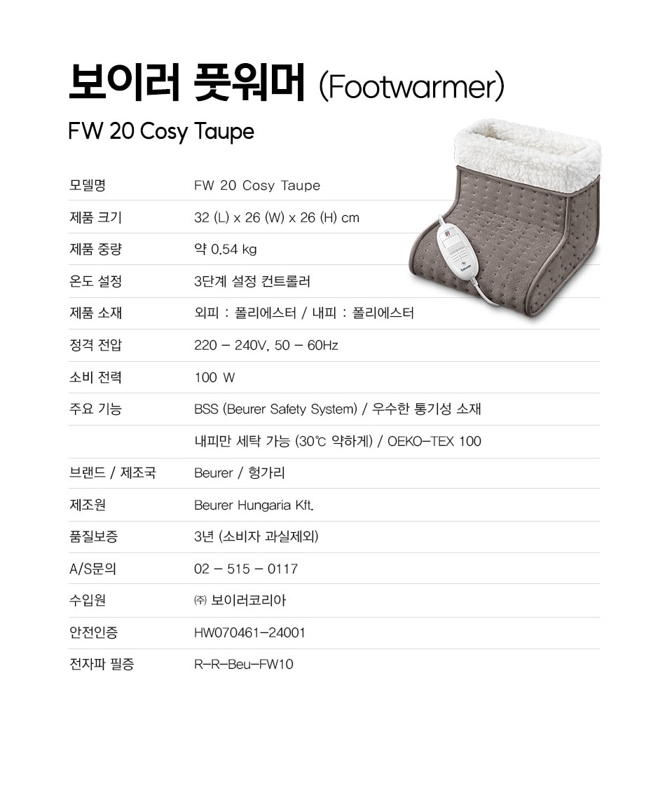| 제조자/수입자 | Beurer Hungaria Kft. / 보이러코리아 |