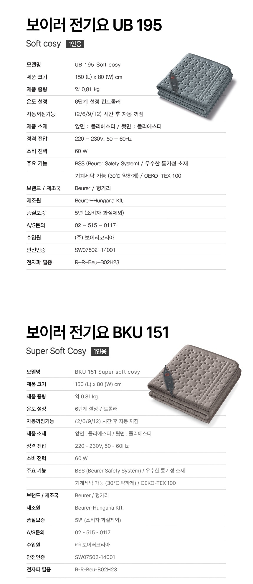 | 제조자/수입자 | Beurer Hungaria Kft. / 보이러코리아 |
