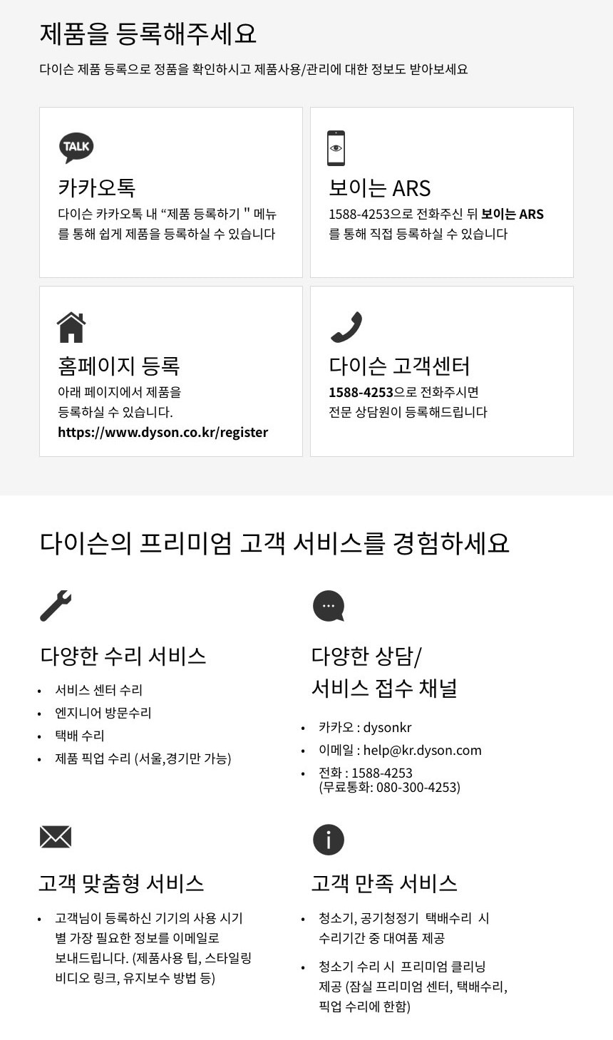 | A/S 책임자와 전화번호 또는 소비자상담 관련 전화번호 | 다이슨 고객센터 080-300-4253 |
