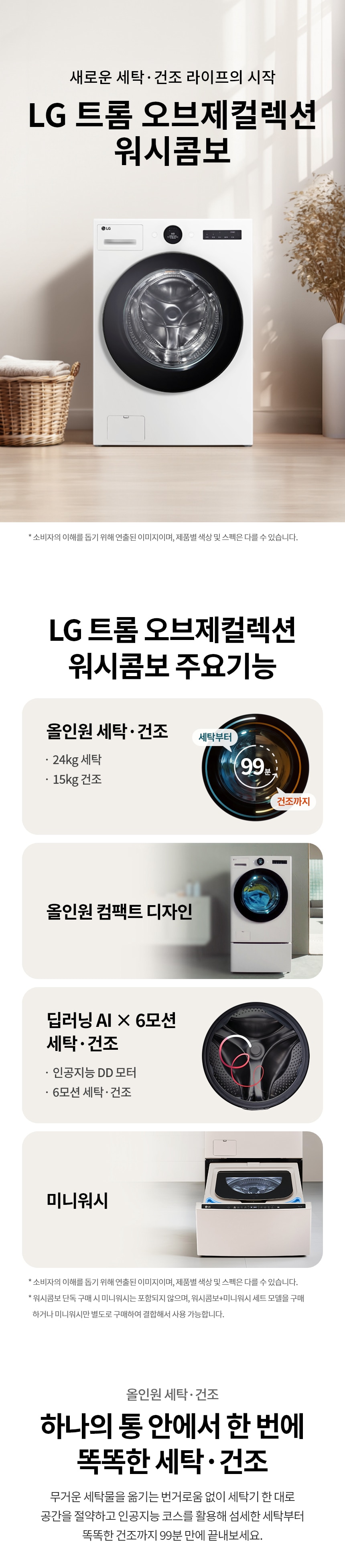| 크기 | 워시콤보: 가로 700 x 세로 830 x 높이 990mm, 무게 112kg 수납함: 가로 700 x 세로 770 x 높이 360mm, 무게 29kg |