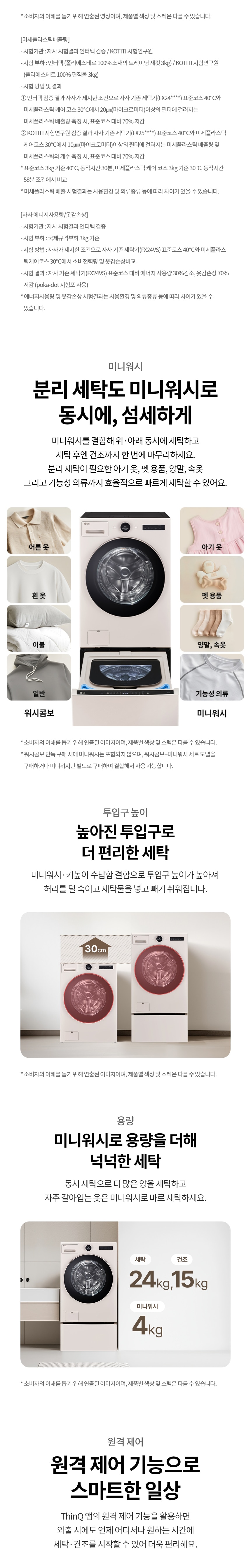 | KC 인증 정보 | 전기용품안전인증번호: 워시콤보 SM07003-24001, 전자파 적합성 등록 번호: 워시콤보 R-R-LGE-FXHP, R-C-LGE-LCWB-001 |