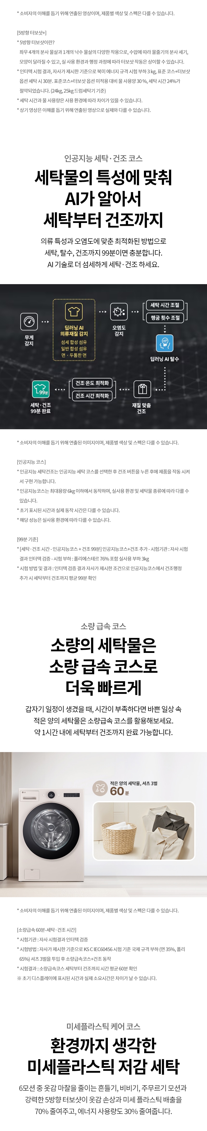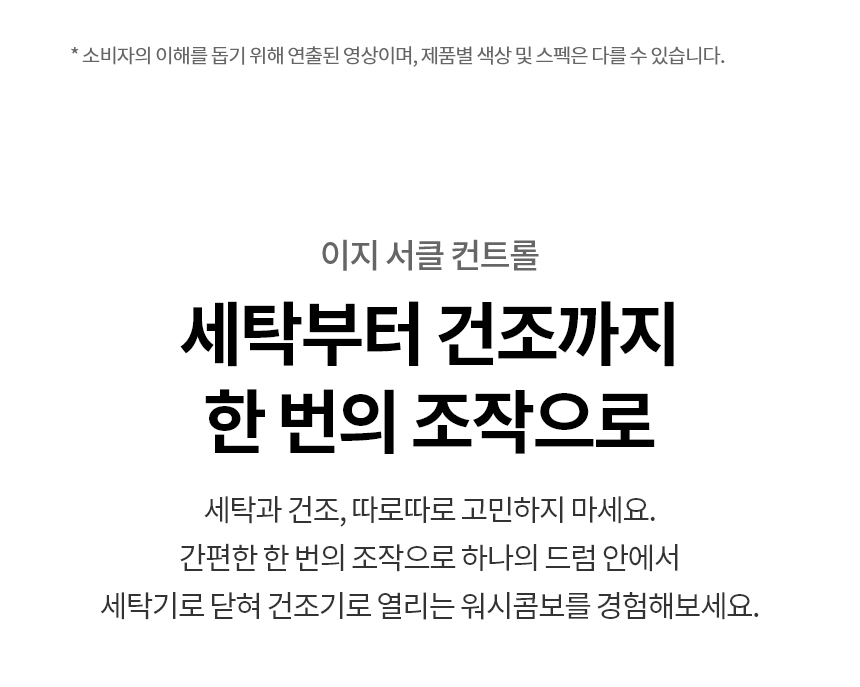 | 정격전압, 소비전력 | 워시콤보:220V / 60Hz / 세탁 2200W, 건조 570W 미니워시: 220V / 60Hz / 1500W |