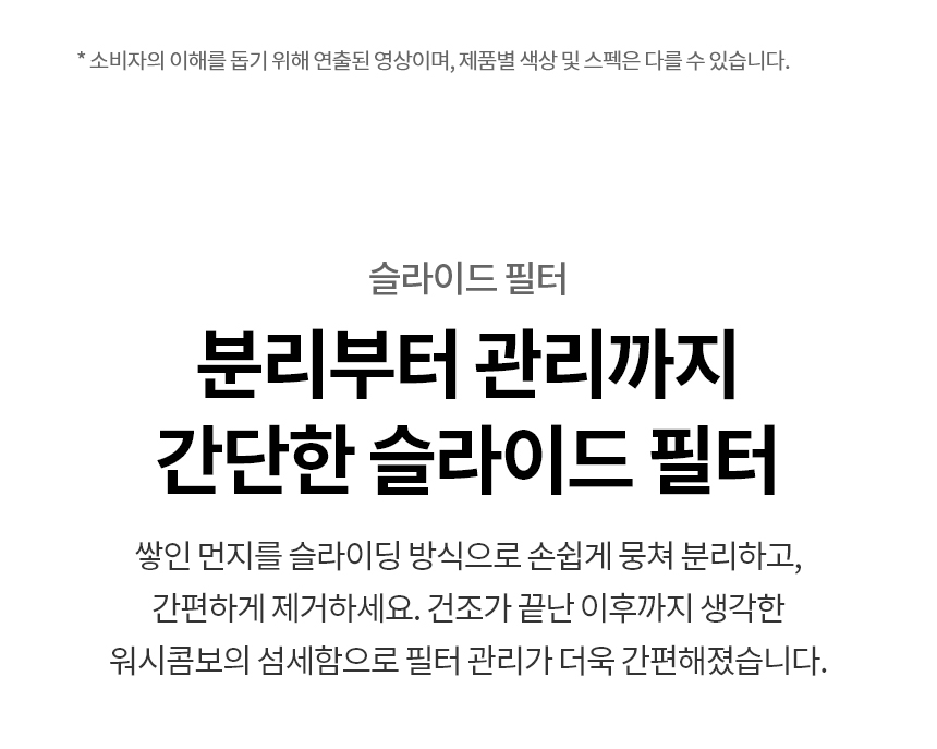 | 크기 | 워시콤보: 가로 700 x 세로 830 x 높이 990mm, 무게 112kg 미니워시: 가로 700 x 세로 770 x 높이 360mm, 무게 48kg |