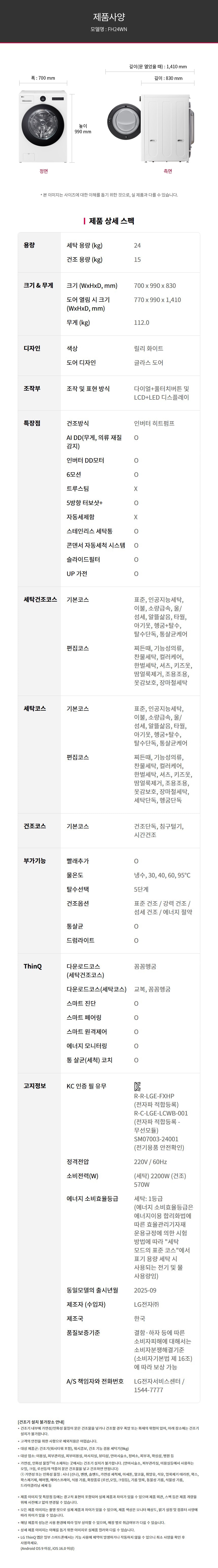 | 모델명 | 워시콤보: FH24WN 미니워시: FX4WC |