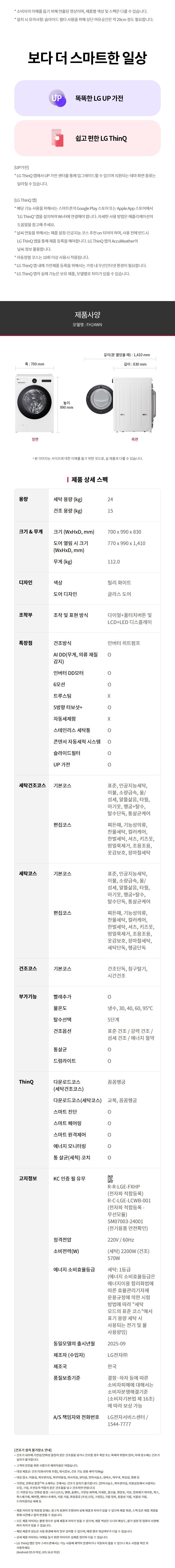 | KC 인증 정보 | 전기용품안전인증번호: SM07003-24001, 전자파 적합성 등록 번호: R-R-LGE-FXHP |