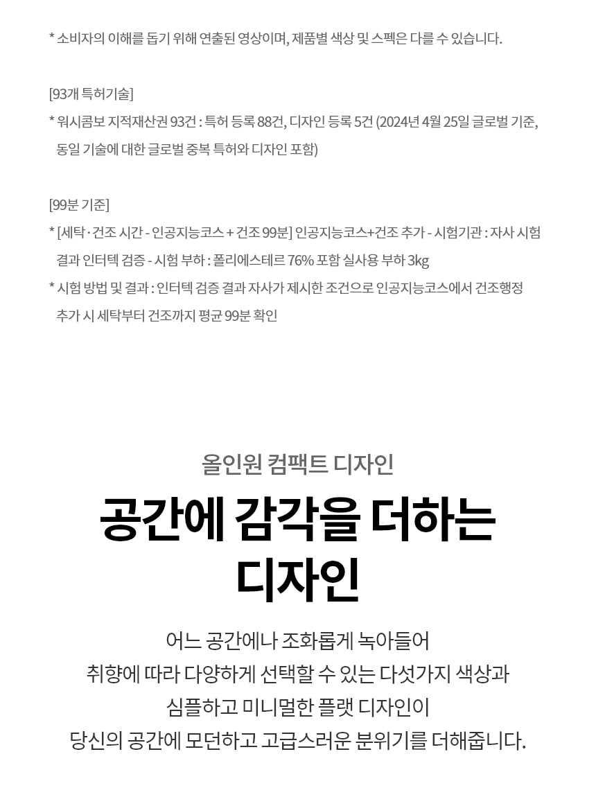 | 정격전압, 소비전력 | 220V / 60Hz / 세탁 2200W, 건조 570W |