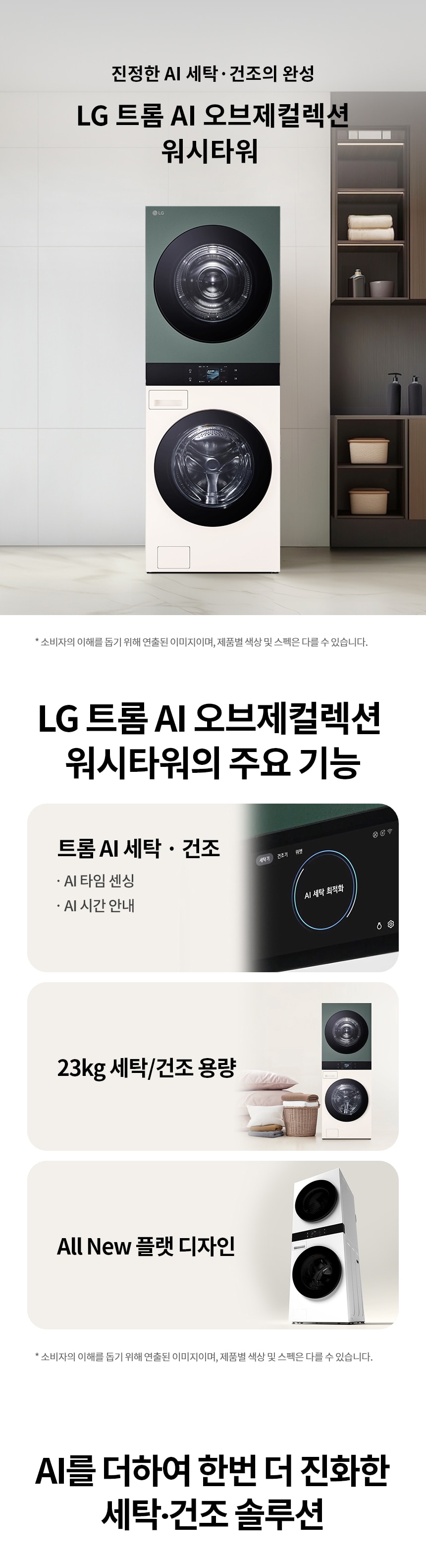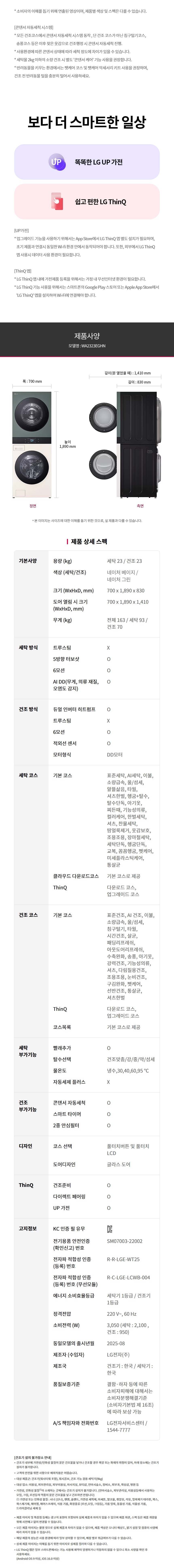 | 품명 | 엘지 오브제 AI 워시타워 세탁 23kg&건조 23kg 베이지 그린 |