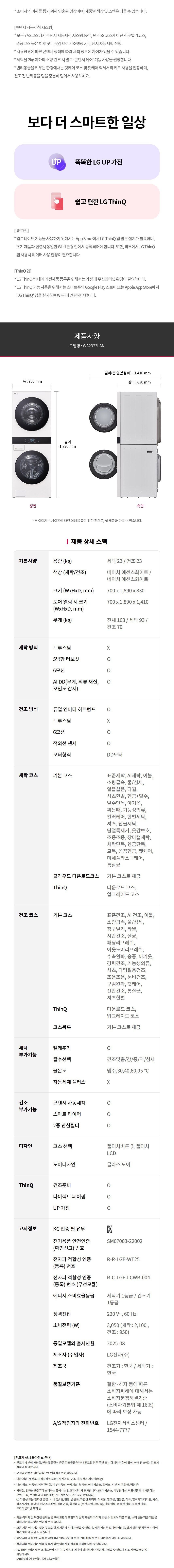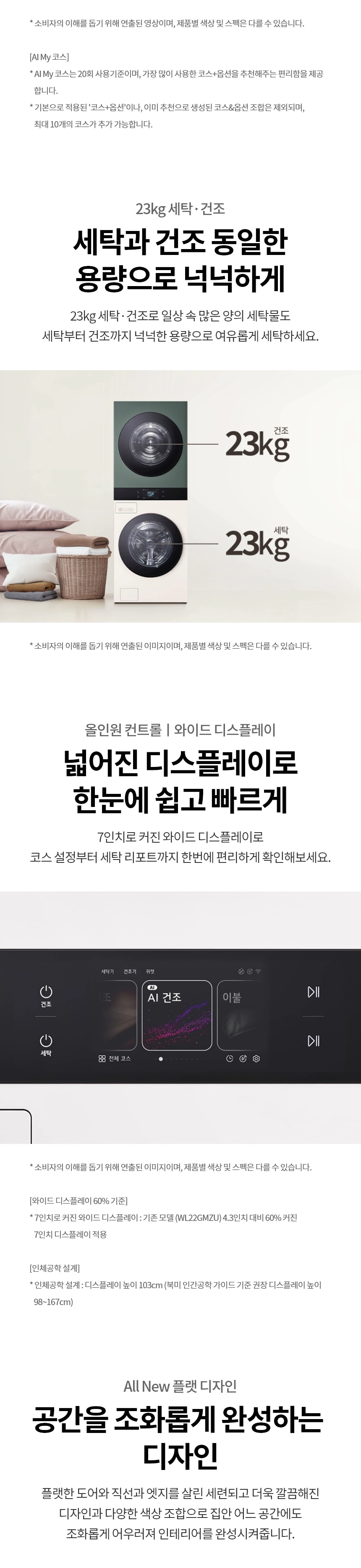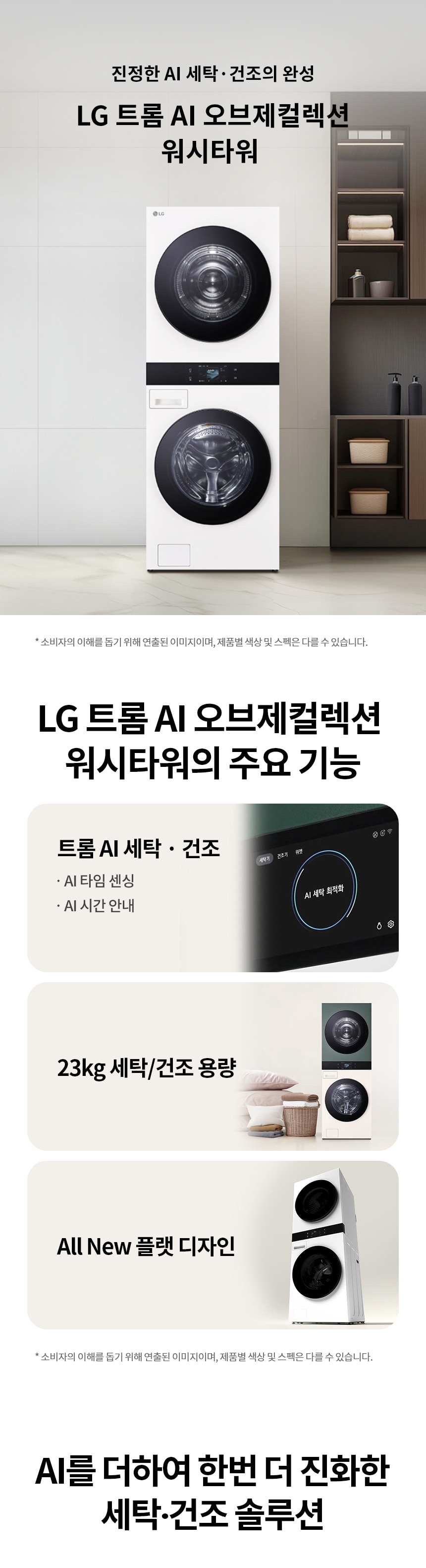 | 품명 | 엘지 오브제 AI 워시타워 세탁 23kg&건조 23kg 화이트 |
