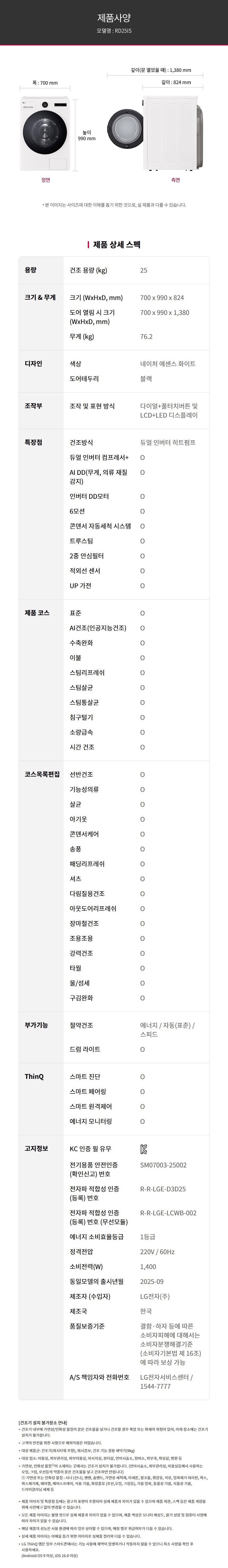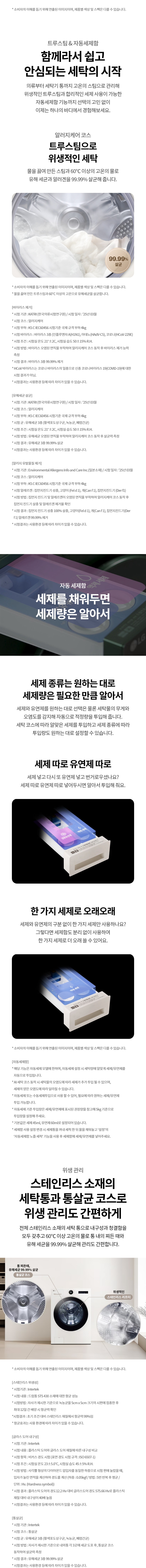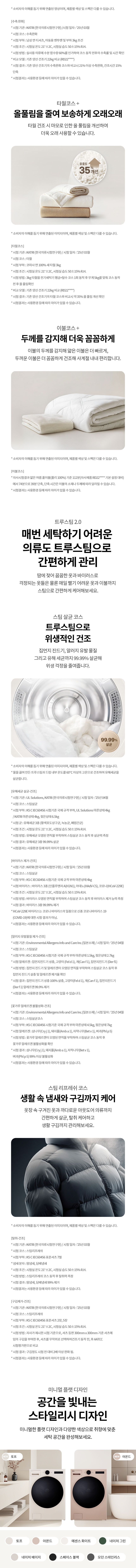 | KC 인증 정보 | 전기용품안전인증번호: 세탁기 SM07003-21003, 건조기 SM07003-25002 |