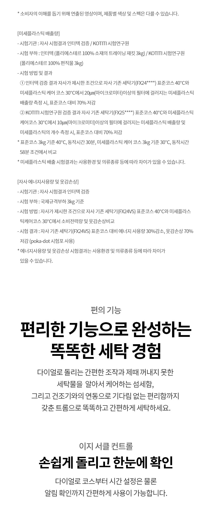 | 정격전압, 소비전력 | 세탁기: 220V / 60Hz / 2200W 건조기: 220V / 60Hz / 1400W |