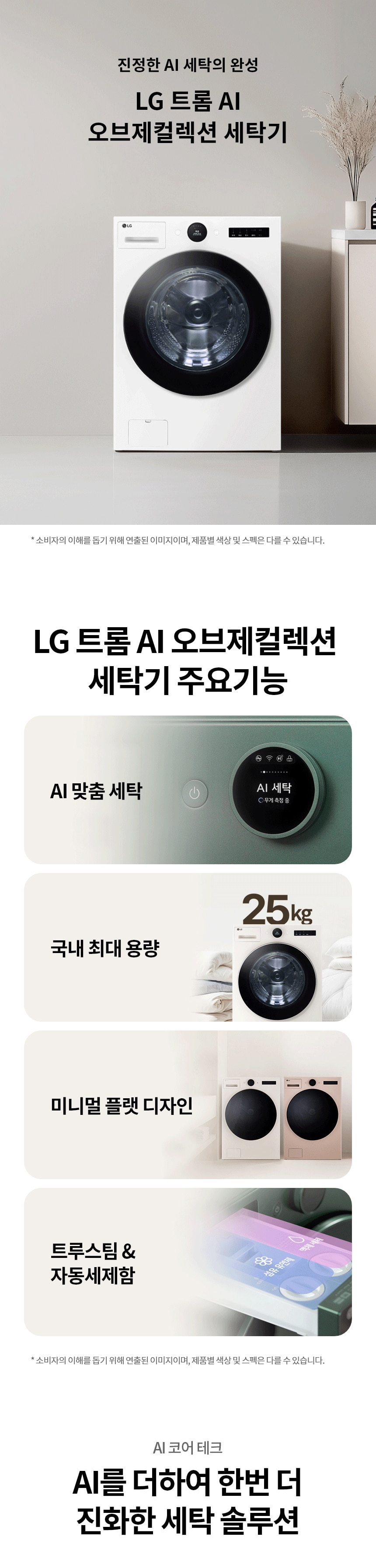 엘지 AI 오브제 세탁기 25kg- 네이처에센스화이트