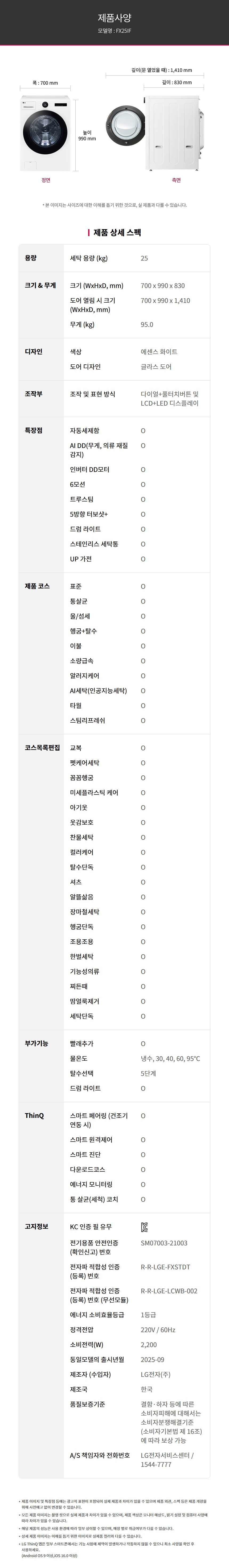 | 품명 | 엘지 AI 오브제 세탁기 25kg- 네이처에센스화이트 |