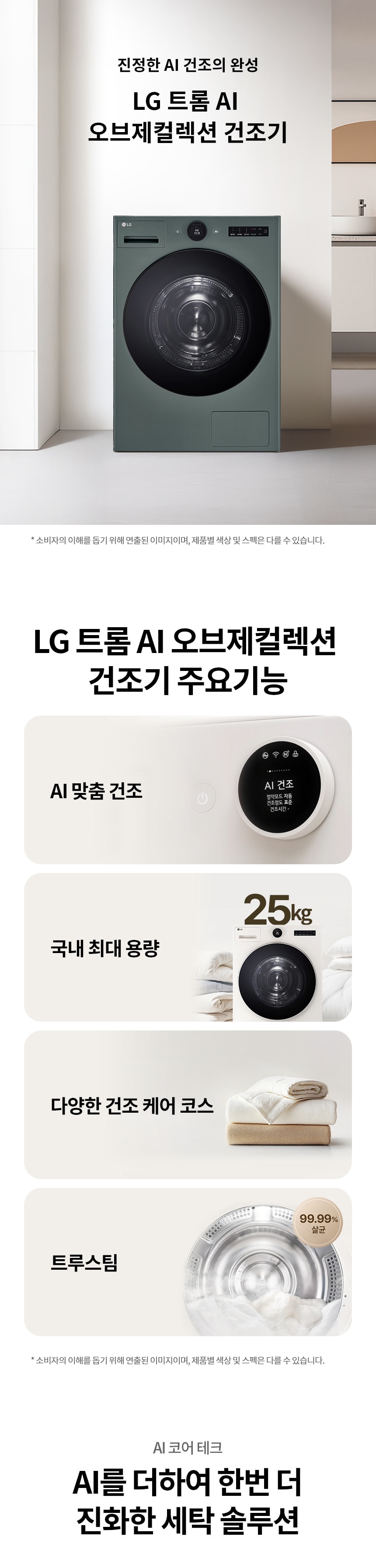 엘지 AI 오브제 건조기 25kg- 네이처그린