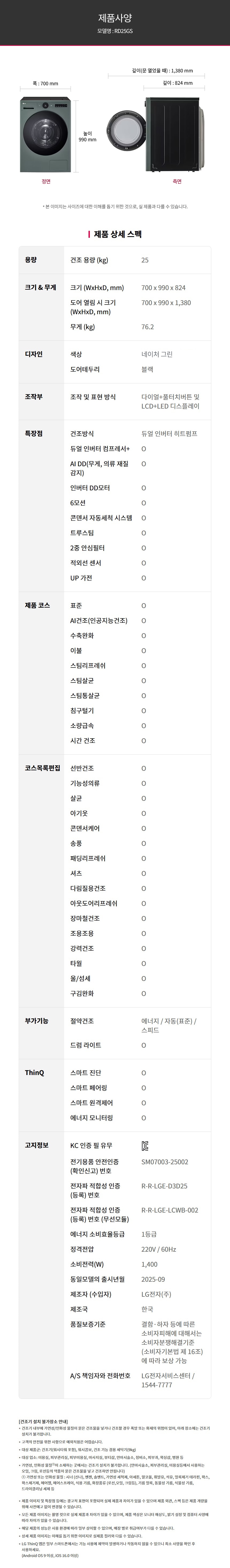 | 품명 | 엘지 AI 오브제 건조기 25kg- 네이처그린 |