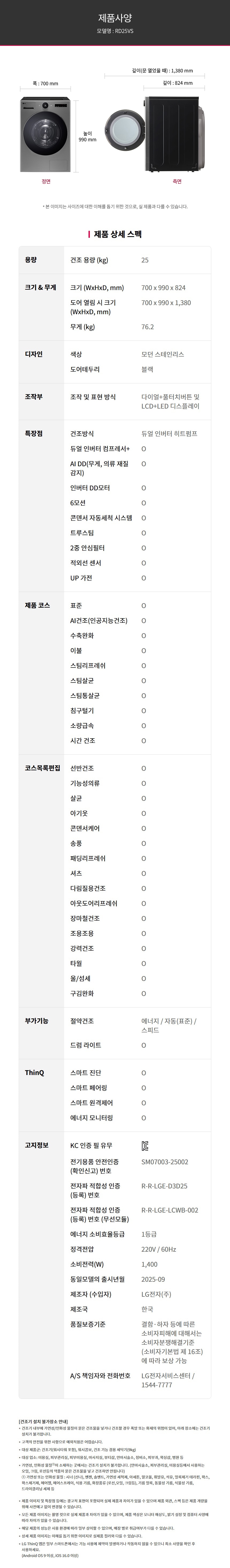 | 품명 | 엘지 AI 오브제 건조기 25kg- 모던스테인리스 |