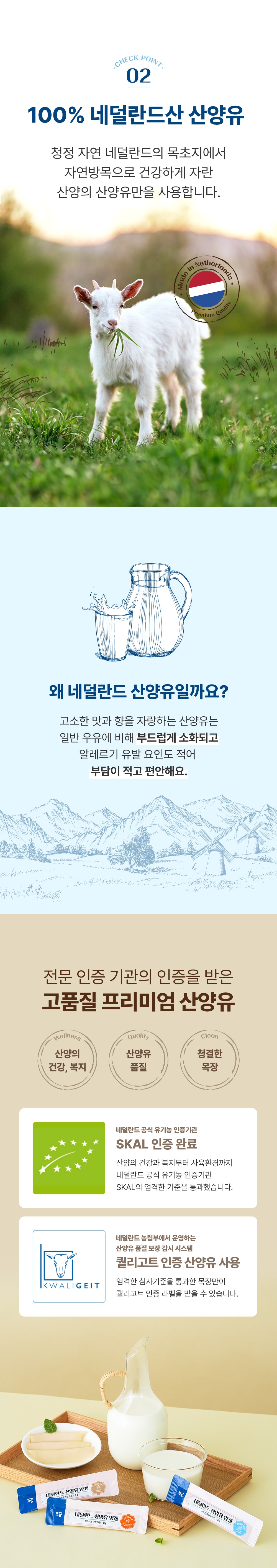 - 장: 국내산 닭가슴살, 고소한 네덜란드산 산양유, 장 환경을 편안하게 유지하는데 도움을 주는 열처리 유산균으로 만들었습니다.