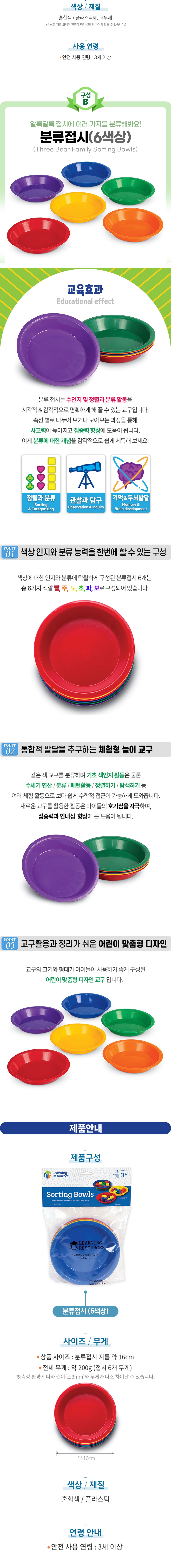 - 구성품 : 지름 16cm 분류접시 6개(6색상)