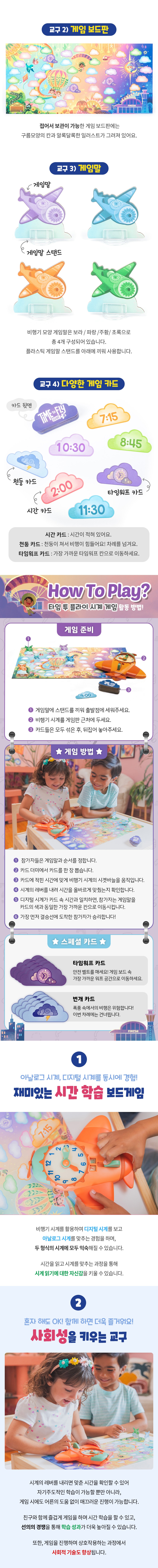 - 시간학습 활동세트 + 타임 투 플라이 시계 게임으로 구성된 세트 상품