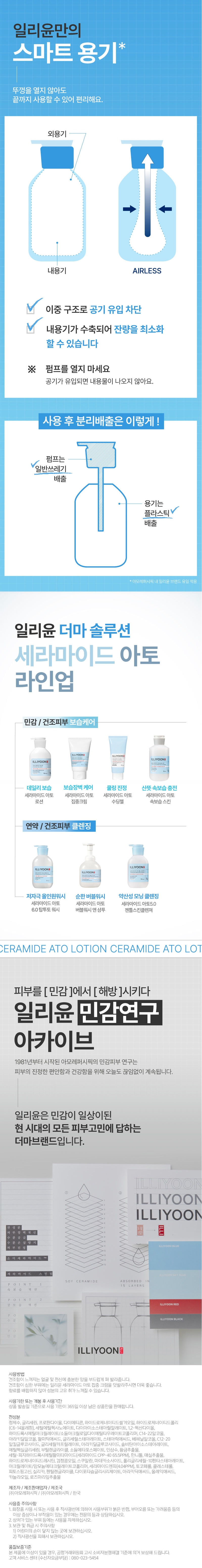 | 사용방법 | 건조함이 느껴지는 얼굴 및 전신에 충분한 양을 부드럽게 펴 발라줍니다. 건조함이 심한 부위에는 세라마이드 아토 집중 크림을 덧발라주시면 더욱 좋습니다. 향료를 배합하지 않아 성분의 고유 취가 느껴질 수 있습니다. |