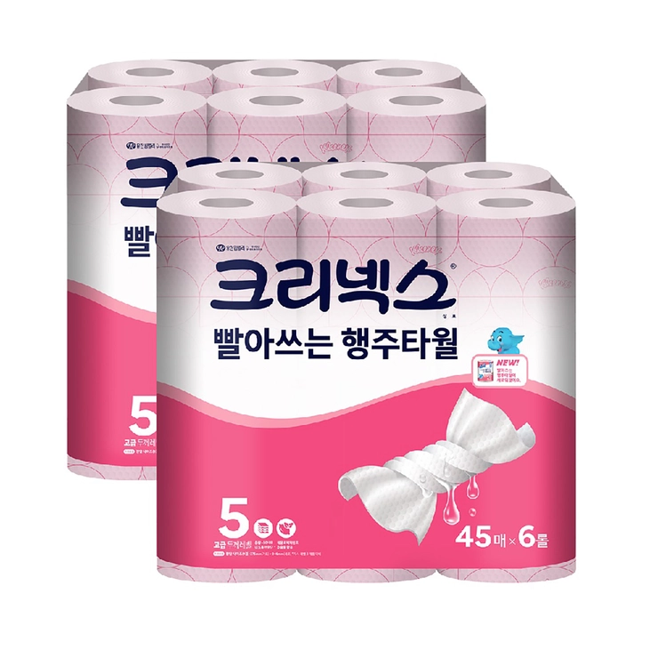 크리넥스 빨아쓰는 핑크행주타월 45매 x 6롤 x 2팩