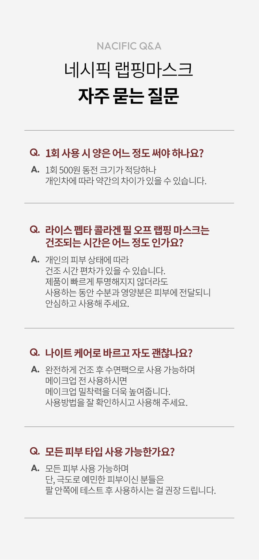 | 제품 주요 사양 | 모든 피부 타입 |