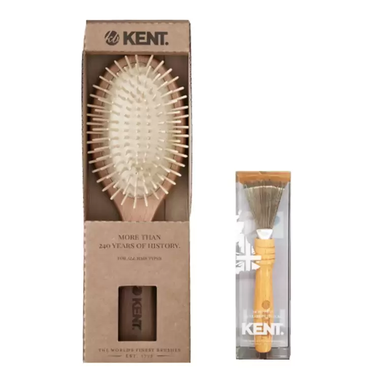 - 켄트 쿠션(L)브러쉬: KENT만의 볼록한 핸들로 편안한 그립감을 선사하며 모발의 큐티클을 제거해주며 헤어 볼륨을 살려줍니다. 우드 핀으로 시원하게 빗어주며, 두피 마사지에 효과를 주어 두피를 건강하게 하고 모근에 활력을 줍니다.