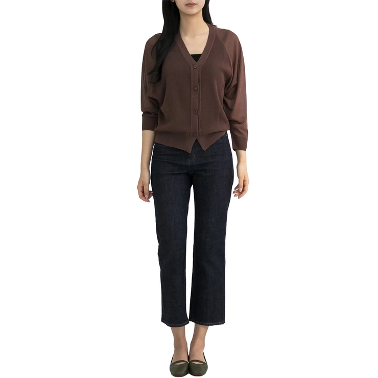 보니스팍스 여성 래글런 니트 가디건 - 브라운