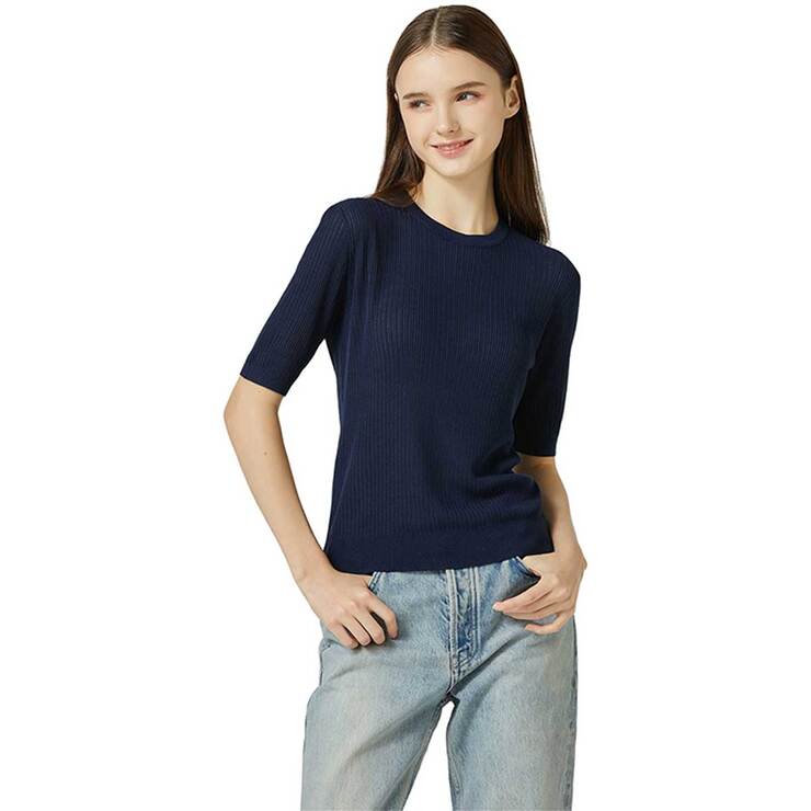 Lydia Vine Women's Rayon Blended S/S Crew Knit - Dark Navy, L