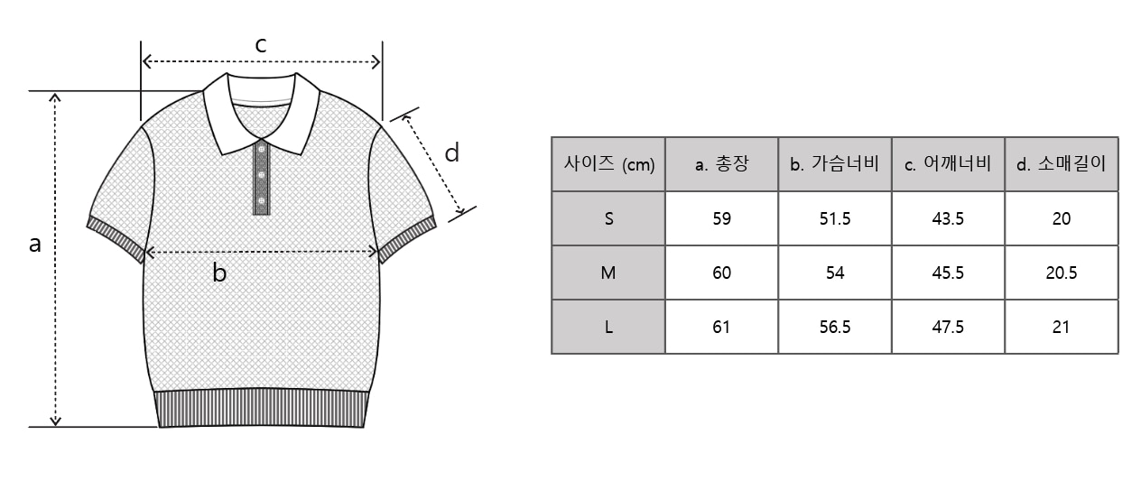 | 크기 | S - 총장 59cm, 어깨너비 43.5cm, 가슴둘레 103cm, 밑단둘레 68cm, 소매기장 20cm M - 총장 60cm, 어깨너비 45.5cm, 가슴둘레 108cm, 밑단둘레 72cm, 소매기장 20.5cm L - 총장 61cm, 어깨너비 47.5cm, 가슴둘레 113cm, 밑단둘레 76cm, 소매기장 21cm 모델 사이즈 - 키: 175cm / 몸무게: 50kg / 착용 사이즈: S 제품 실측 사이즈로 재는 방식에 따라 약간의 오차가 있을 수 있습니다. |