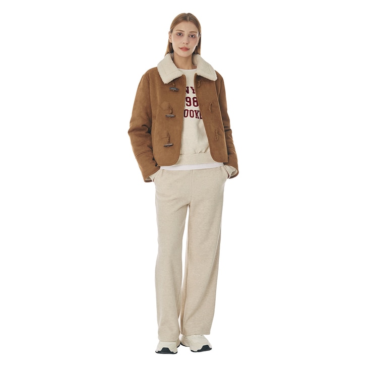 - 토글 단추 디테일로 캐주얼한 감성을 더한 인조 무스탕 재킷