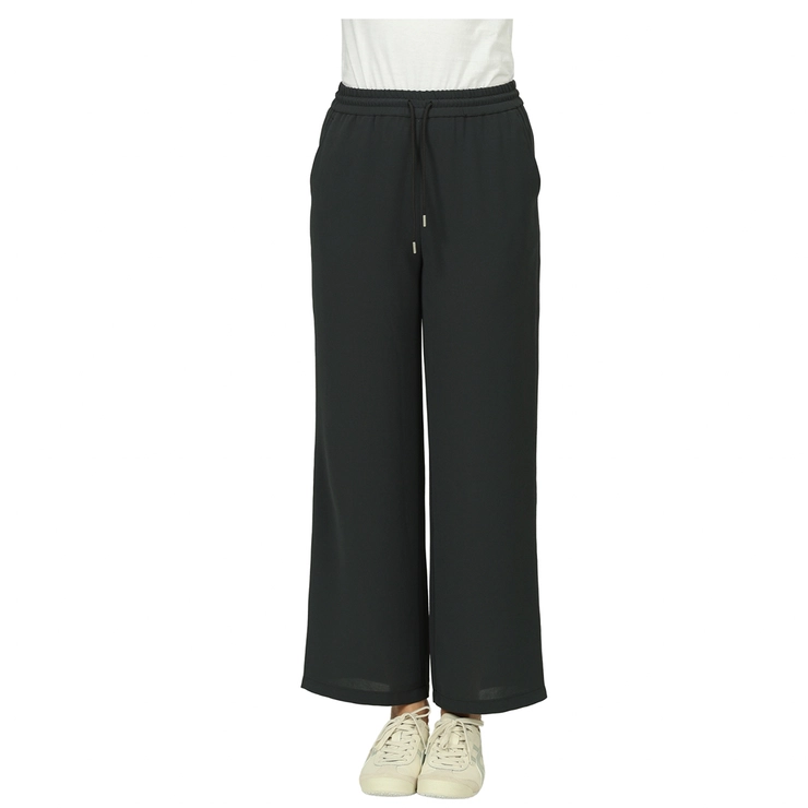 - 부드럽게 흐르는 폴리소재를 사용하여 제작된 와이드 팬츠