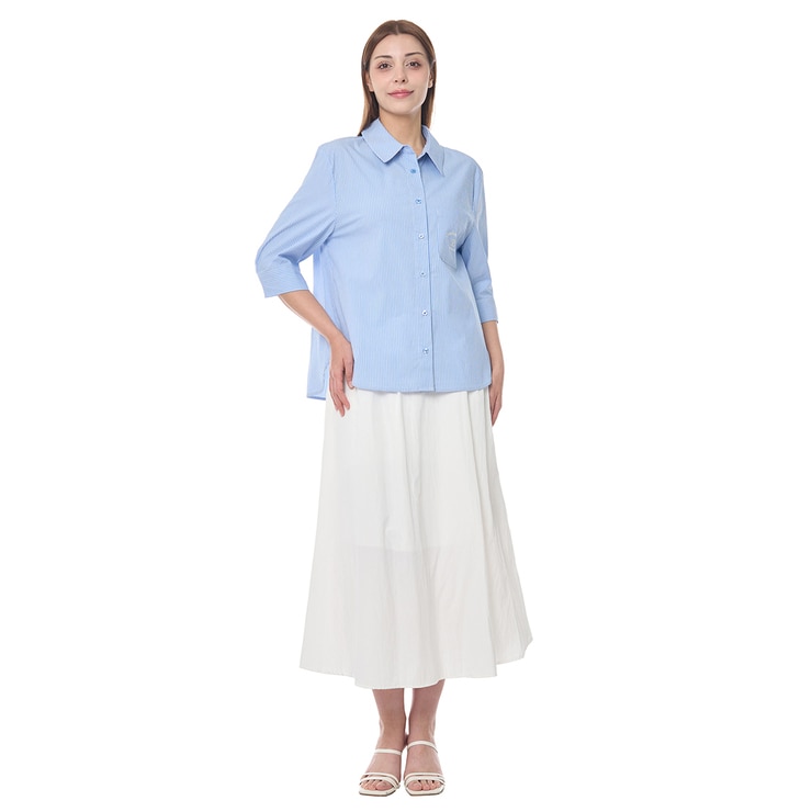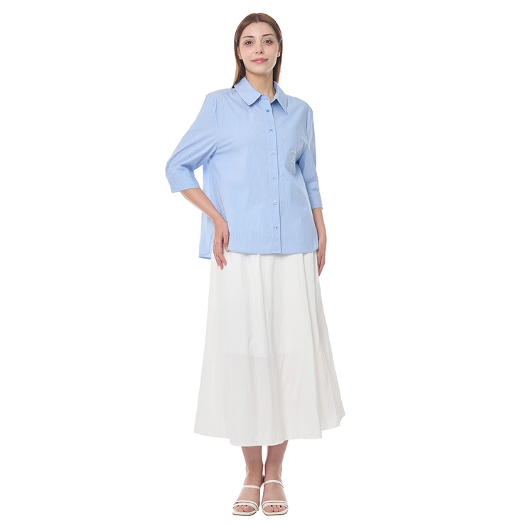 - 은은한 스트라이프와 자수가 포인트인 블라우스