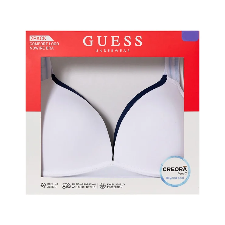 Guess No Wire Logo Band Bra 2PK - White/Navy, 85A
