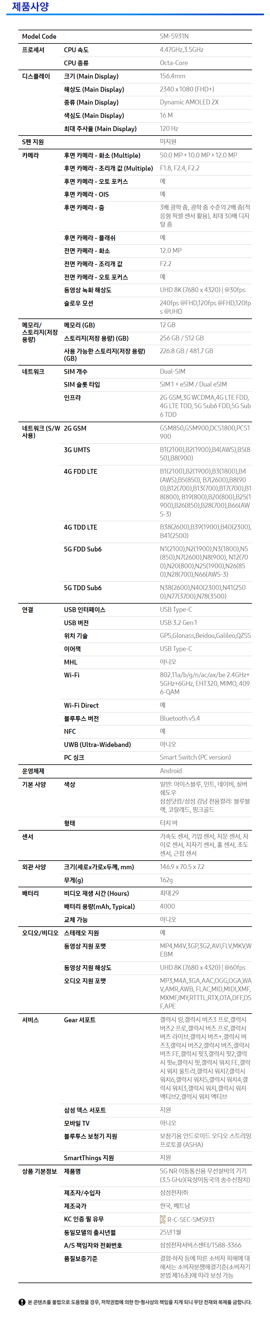 | 모델명 | SM-S931NDBFKOO |