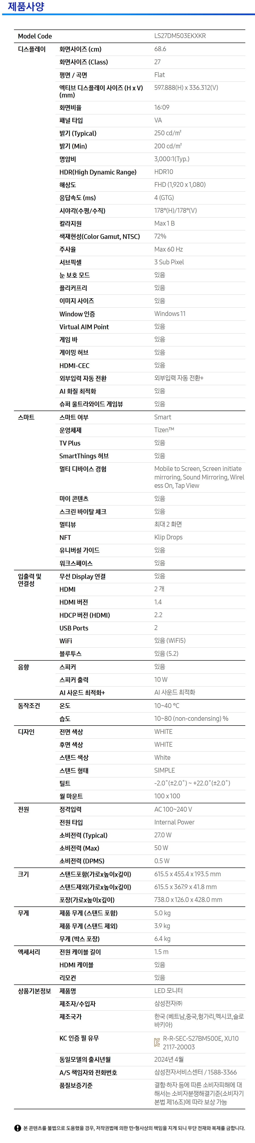 | 주요사양 | 상품상세정보 참조 |