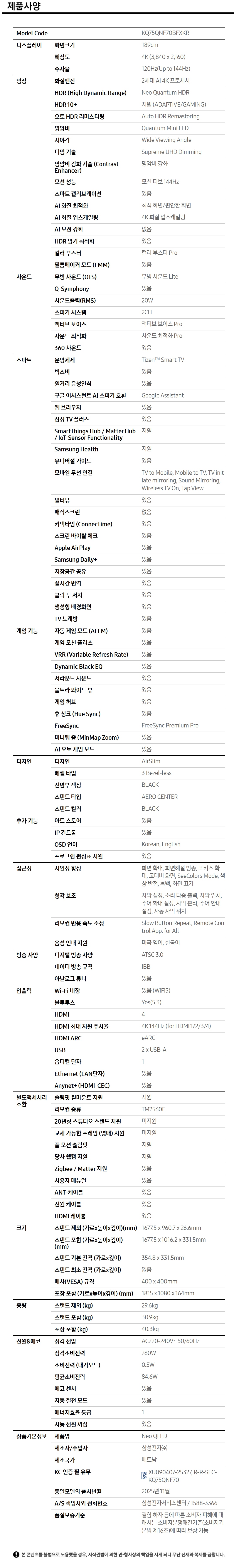 | 품명 | 삼성 Neo QLED TV KQ75QNF70BFXKR 189cm (75) |