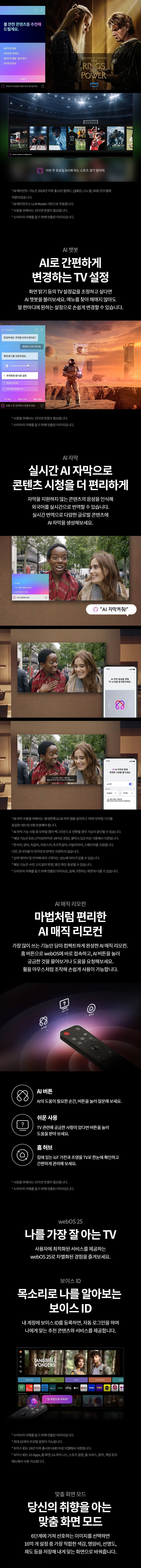 | 정격전압, 소비전력 | TV: 220-240V / 60Hz / 320W 사운드바: AC 100~240V, 50/60Hz |
