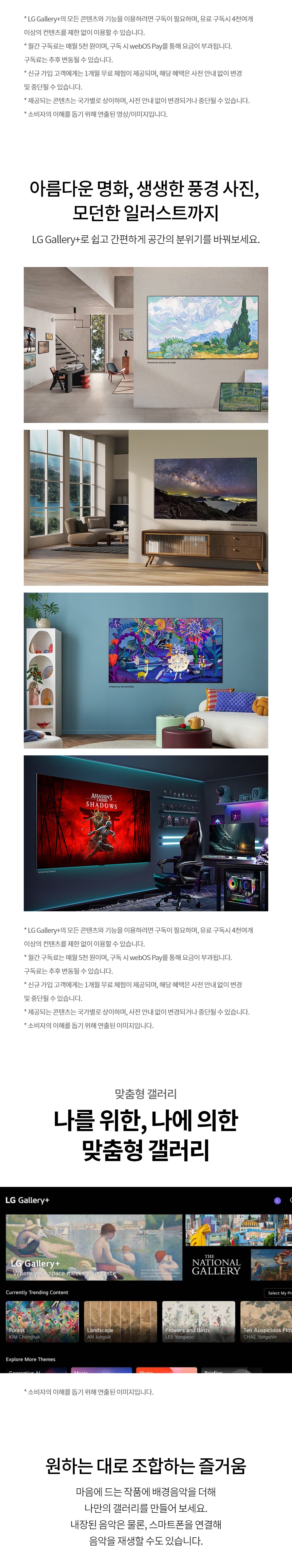 | 크기 | 스탠드형:가로 1927 x 높이 1167 x 깊이 362mm, 무게 45.9kg 벽걸이형: 가로 1927 x 높이 1104 x 깊이 59.9mm, 무게 45.2kg 사운드바 본체: 가로 650 x 높이 63 x 깊이 99 mm, 무게 2.2kg |