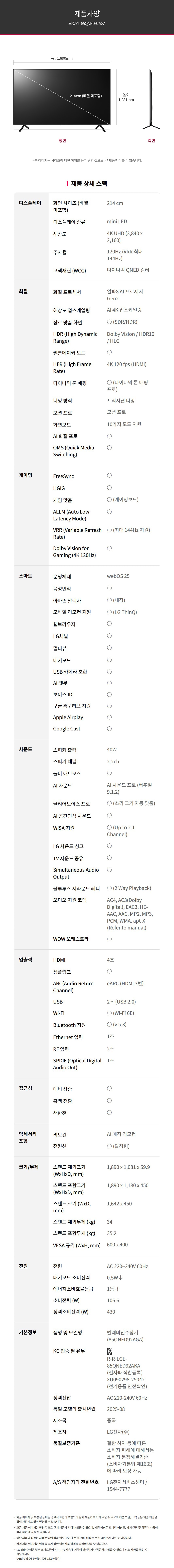 | 품명 | 엘지 QNED evo 85QNED92AGA 214cm (85) |