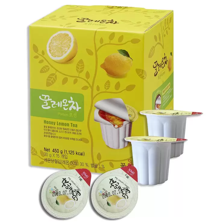 | 원재료명 및 함량 | [꿀유자차] 당침유자[유자(국산) 50%, 정백당 50%] 50%, 사양벌꿀(국산) 1%, 액상과당, 정백당, 정제수, 구연산, 카라기난, 구연산나트륨, 비타민C [꿀레몬차] 레몬당절임[레몬(미국산) 50%, 정백당 50%]30%, 액상과당, 정백당, 정제수, 사양벌꿀(국산)1%, 구연산나트륨, 합성착향료(레몬향), 정제염, 비타민C [꿀생강차] 당침생강[생강(국산) 60%, 정백당 40%]25%, 생강농축액(고형분/국산6%) 2.1%, 사양벌꿀(국산) 1%, 정백당, 정제수, 진저올레오레진 |