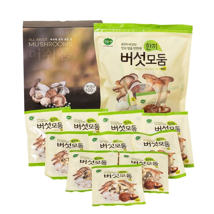 | 식품의 유형(농수축산물의 경우, 품목 또는 명칭) | 농산물(면세) / 일품채 모둠 한끼 버섯 10g x 10 |