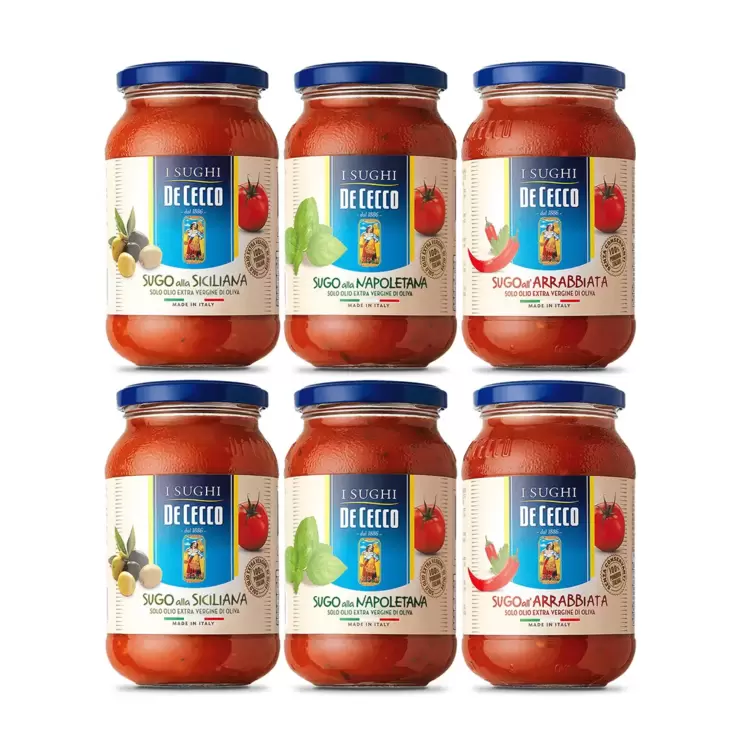 De Cecco Pasta Sauce 400g x 6 - Arrabbiatax2+Napoletanax2+Sicilianax2
