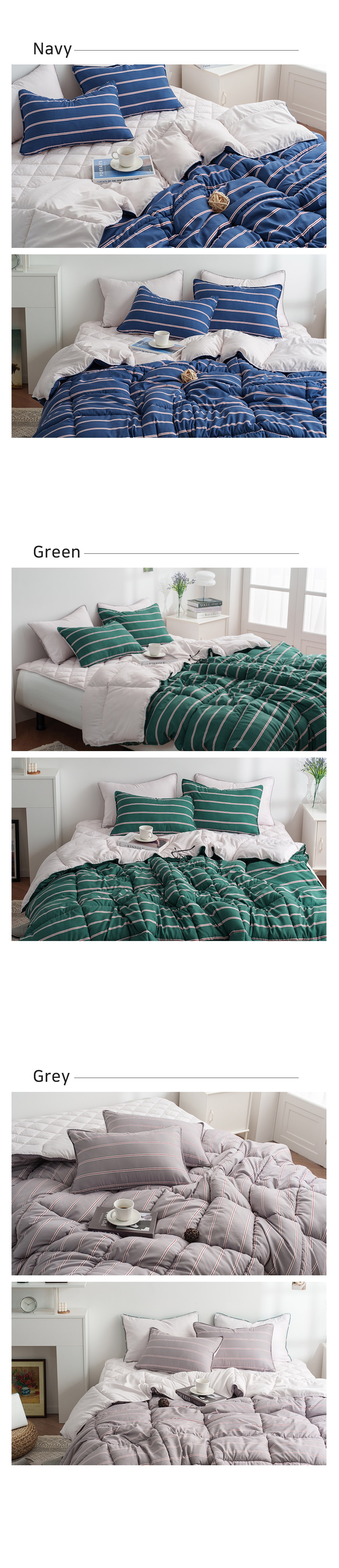 - 한쪽은 솔리드 컬러, 다른 한쪽은 같은 컬러톤의 스트라이프 패턴을 넣어 디자인하여 양면 사용이 가능합니다.